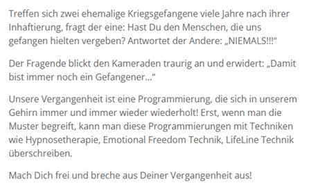 Erinnere dich, deine Wahrnehmung besteht aus deiner persönlichen Auslegung der Welt und jeder und jede schafft sich seine eigenen Erfahrungen. Zusammen gibt dir die mächtige Verbindung dieser Regeln, dass du die Qualität deines Gefühlslebens bestimmst. Es liegt an dir zu entscheiden wie du reagierst, ob mit Gefühlen wie Hass etc. oder Gelassenheit und Vergebung.